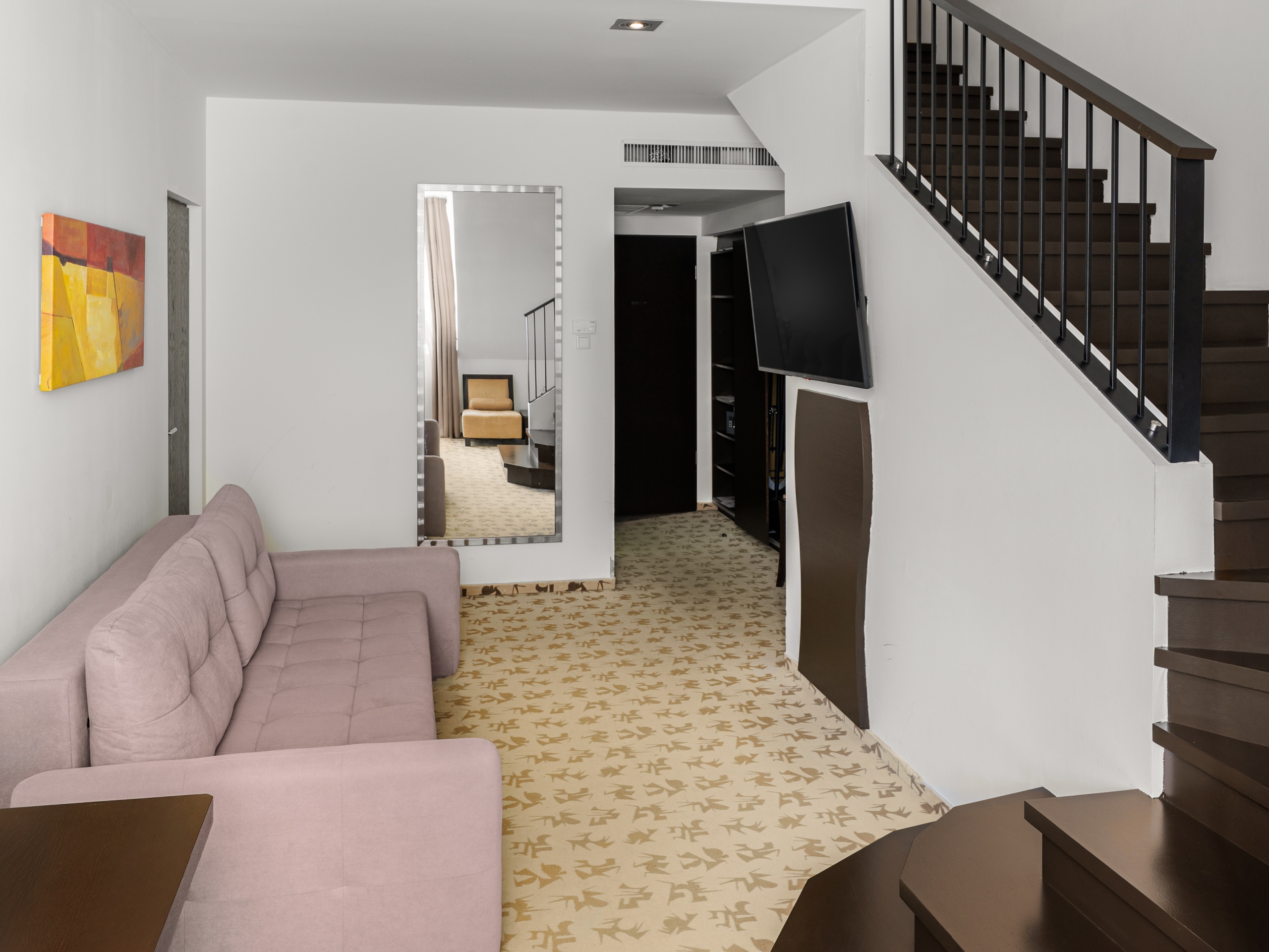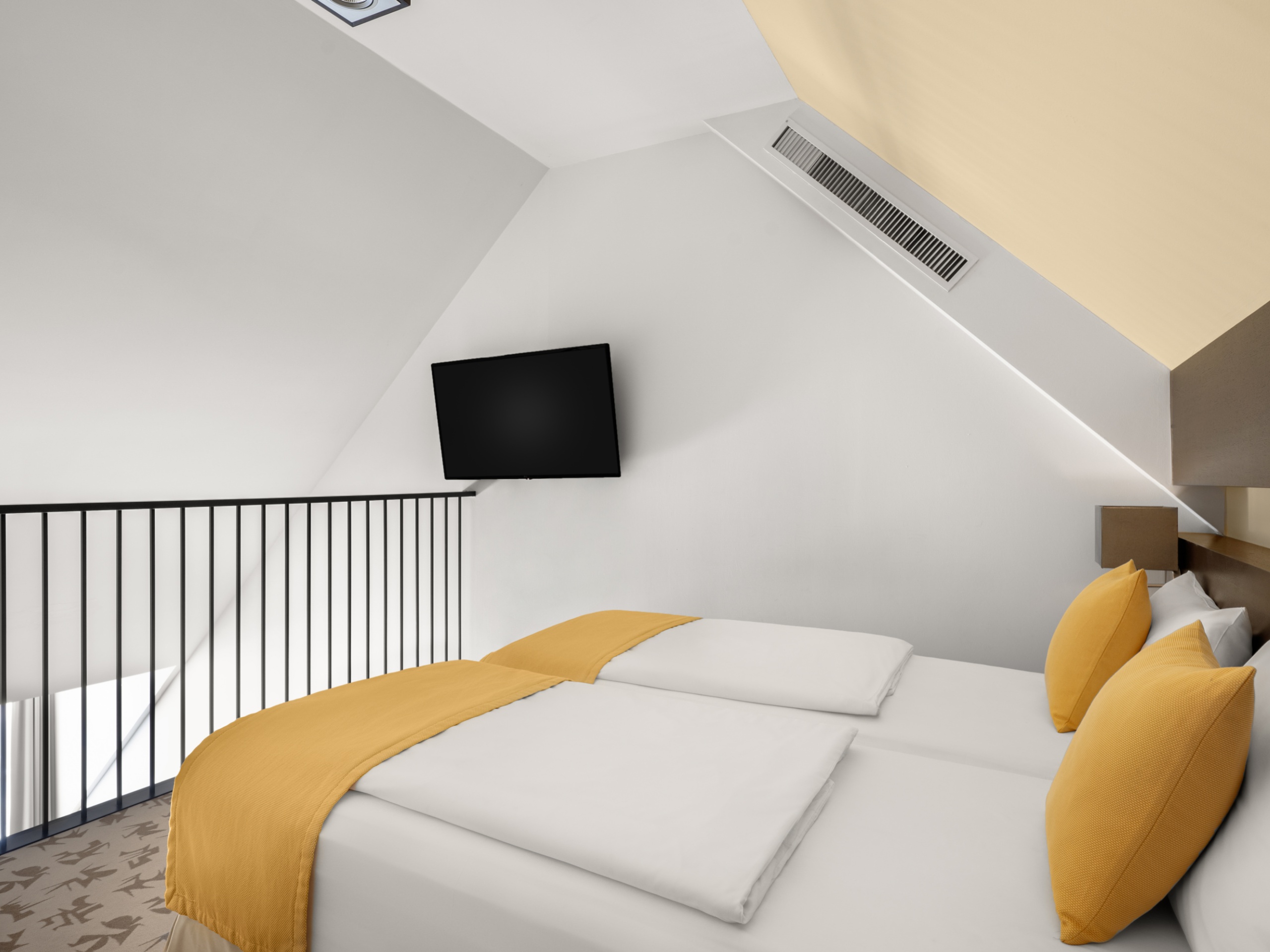 Questa camera è ideale per coppie o per famiglie con bambini piccoli. La camera è spaziosa (adatta anche per due letti aggiuntivi), funzionale, e garantisce il massimo comfort per ogni ospite.